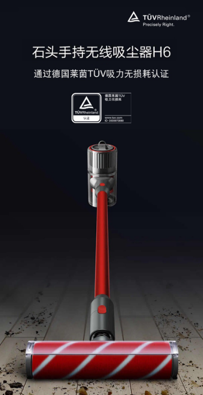 石头手持无线吸尘器H6已通过TUV莱茵的吸力无损耗认证
