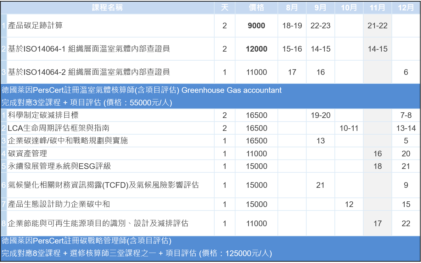 11門低碳課程供您選擇